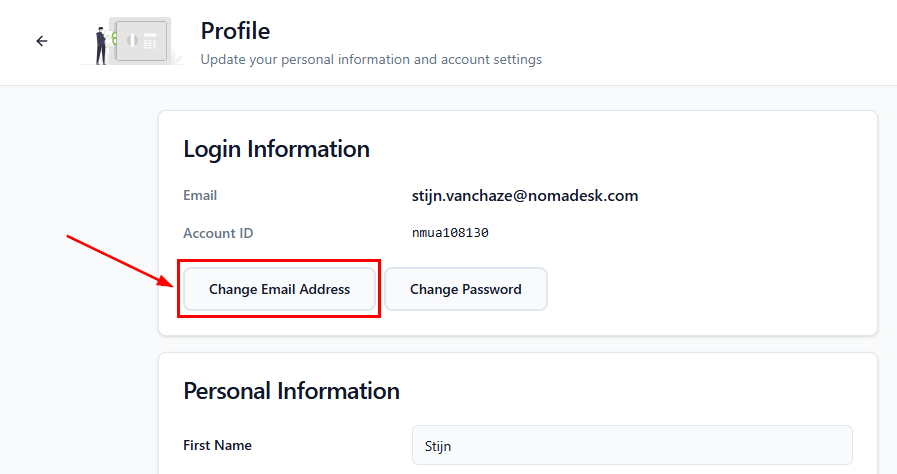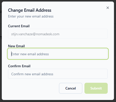 - An email will be sent to your current email address as confirmation. Once confirmed, your login to myNomadesk will change to your new email address.