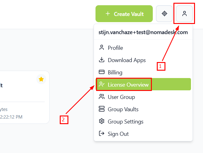 - Click on the Profile icon and go to License Overview
