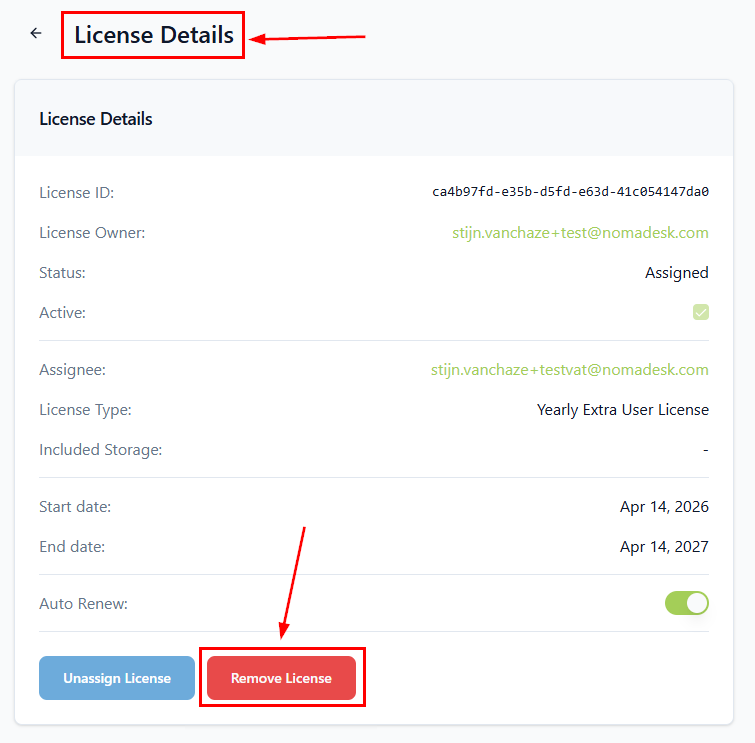 - Click Remove License to delete the license