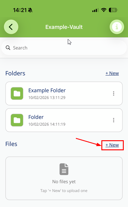 Adding files or photos to your Vault (Mobile App) Stijn Follow Open your Vault and navigate to the folder where you want to add the file or photo.Tap on +New.Choose the type of file you want to upload; files, photos or videos.Select the files or photos that you want to upload and confirm. Related articles Creating a new folder (Mobile App) Updating the Nomadesk Dashboard